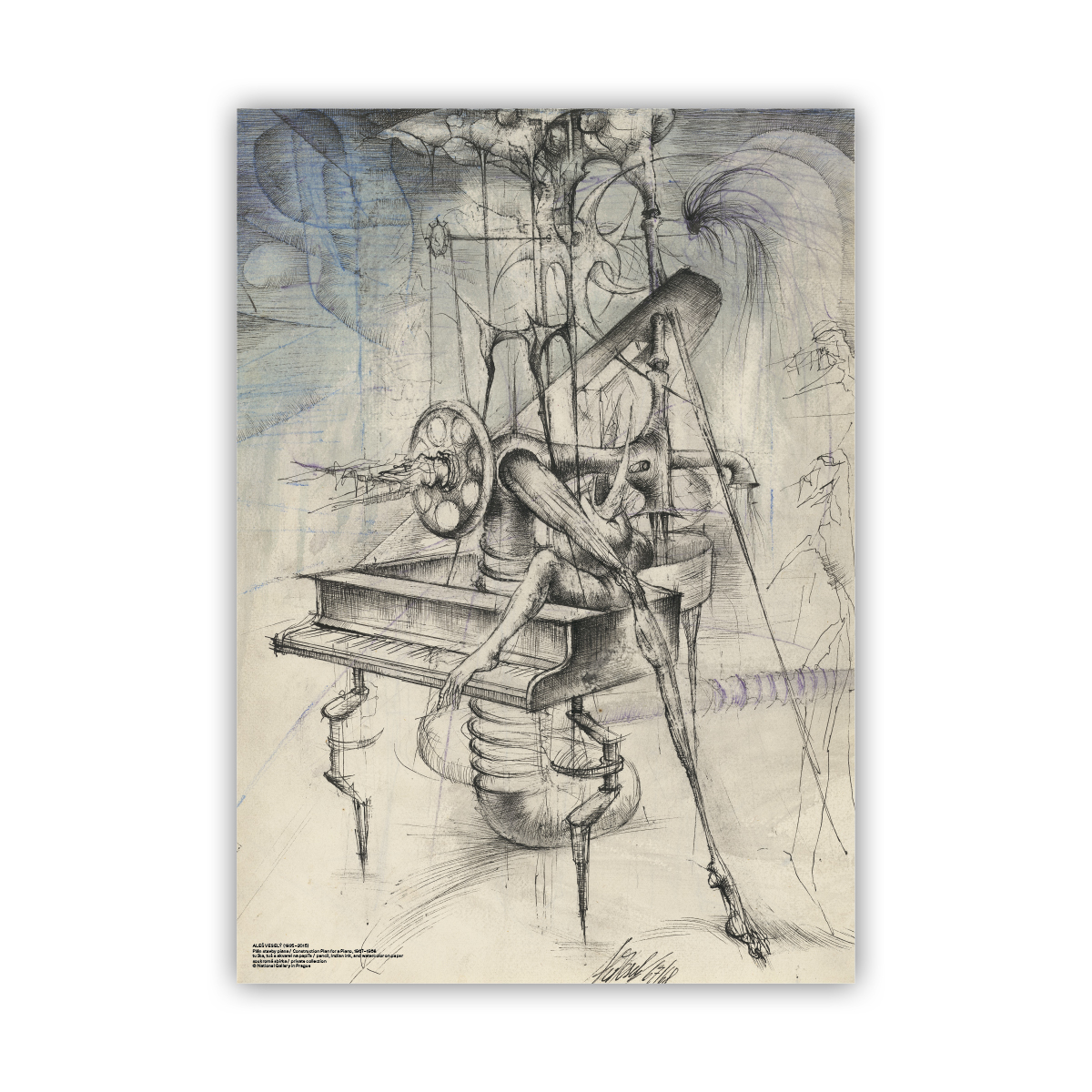 ALEŠ VESELÝ (1935–2015): Projekt plastiky / Sculpture Project, 1968. Tužka, tuš a akvarel na papíře / pencil, Indian ink and watercolor on paper. | Kráčející věž (projekt sochy před hotelem…