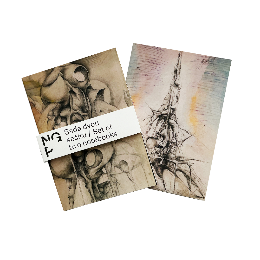 ALEŠ VESELÝ (1935–2015): Projekt plastiky / Sculpture Project, 1968. Tužka, tuš a akvarel na papíře / pencil, Indian ink and watercolor on paper. | Kráčející věž (projekt sochy před hotelem InterContinental) / Walking Tower (project for a sculpture in front of the InterContinental Hotel), 1970. Tužka, tuš a akvarel na papíře / pencil, Indian ink, and watercolor on paper. Soukromá sbírka / private collection.